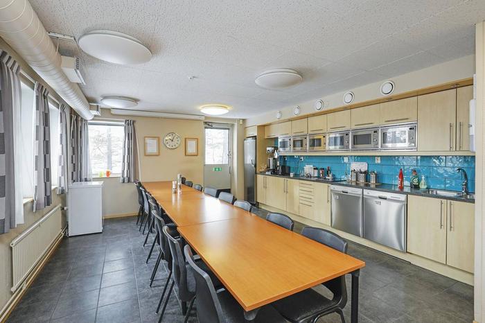 Lokalerna är funktionellt uppdelade i flera sektioner, inklusive produktionslokal, monteringsytor, lager för formverktyg, mätrum, torkrum samt utlastningsytor. Därtill finns kontorsutrymmen samt personalutrymmen såsom lunchrum och omklädningsrum för både damer och herrar, vilket skapar en komplett och effektiv arbetsmiljö.