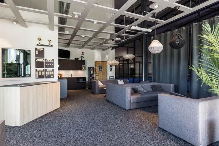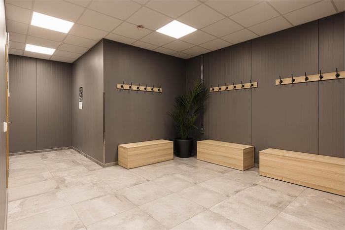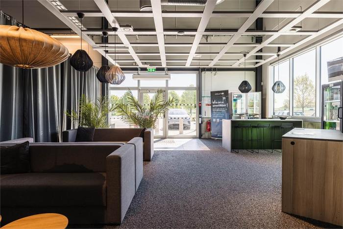 Högt i tak och öppen planlösning med lobby i entrén med reception/kassa.