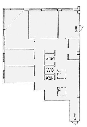 Planlösning:Idag nyttjas lokalen som kontor med mindre lagerdel tidigare hyresgäst hade enklare verkstad samt kontor.