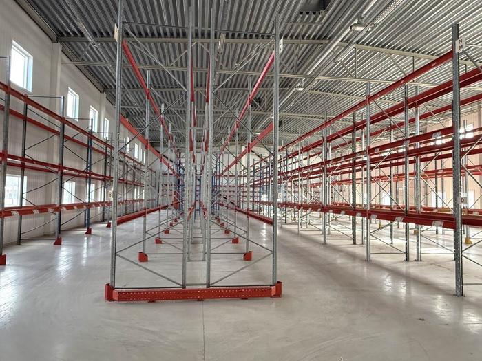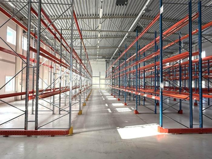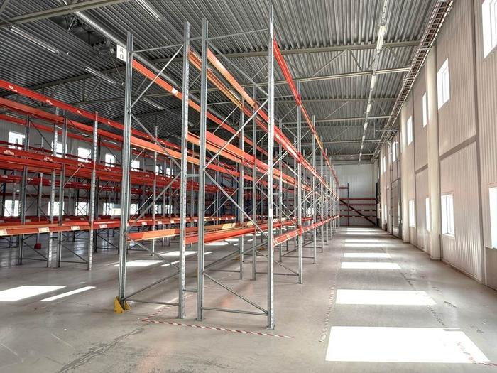 Lagerdel:Stora öppna ytor medtakhöjd om 6,5 m under balk, delvis utrustat med pallställage