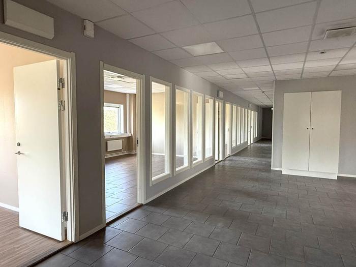 Kontorsdel:Ca 670 kvm på övre plan, nås via trappa och hiss
