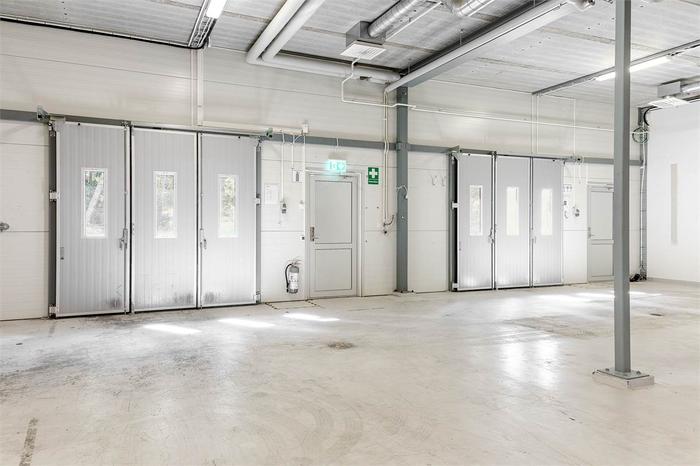 Kontorsdelen erbjuder en trevlig arbetsmiljö med flera kontorsrum, konferensyta, pentry, WC och dusch. Lokalen är flexibel och kan anpassas efter verksamhetens behov.