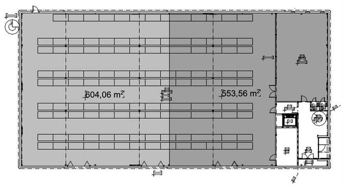 I dag är ytan fördelad på produktion ca 650 m2 med hög bärighet (takhöjd 4 m) samt modernt kontor/konferens/kök och WC-grupper (dusch) om ca 550 m2