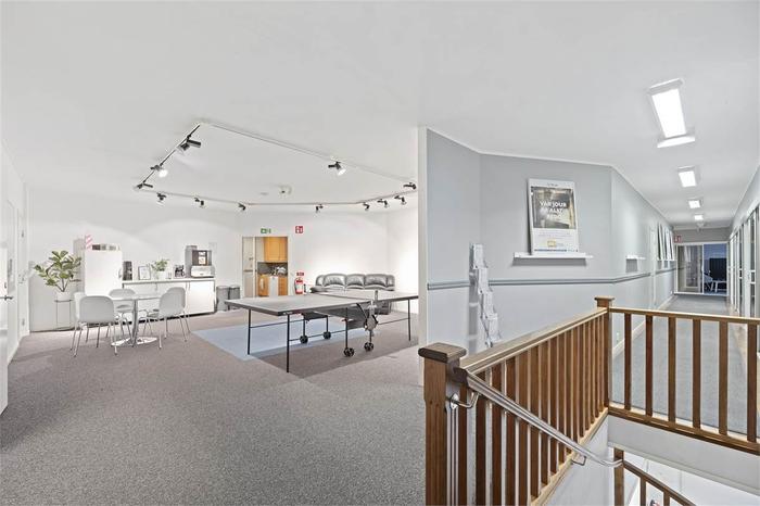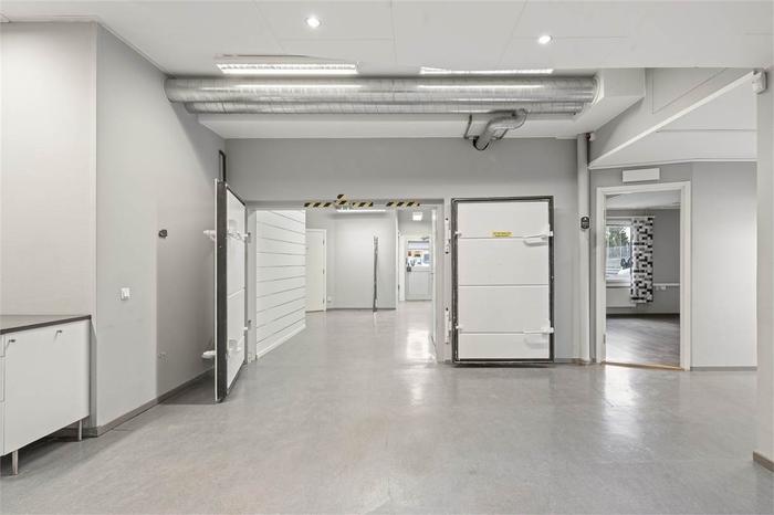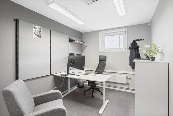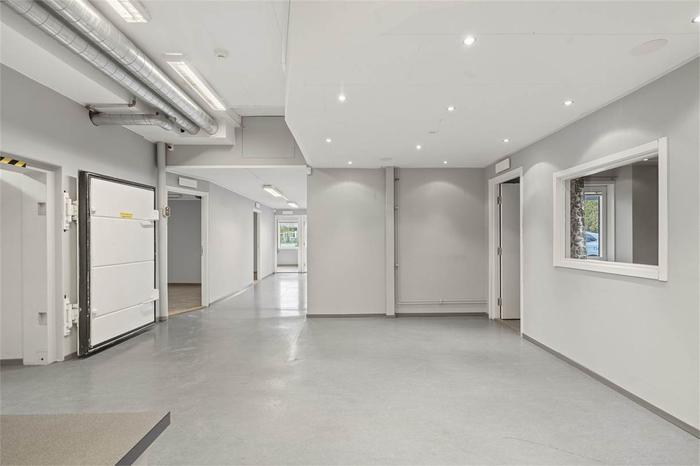 Lagerbyggnad som är uppdelad i två enheter där en hyresgäst har 246 kvm ombonade ytor samt 82 kvm lager på plan 1 På plan 2 har samma hyresgäst 188 kvm kontor och personalutrymmen. Vägg i vägg med dessa lokaler finns en vakant lageryta om 410 kvm.