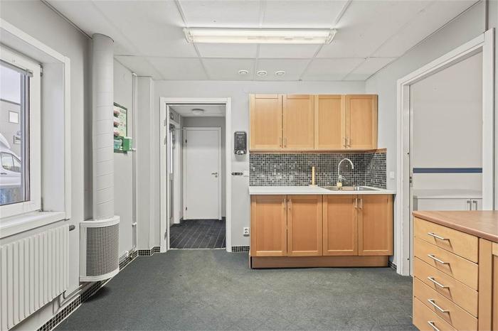Butiks och kontorsytan är total 965 kvm varav 450 kvm är kontor på övre plan . De ytor på bottenplanet om totalt 515kvm inrymmer både butik, kontor och personalytor. Dessa ytor går att dela av i mindre enheter om behovet finns. Det finns entréer från två sidor.