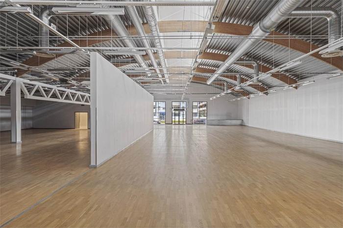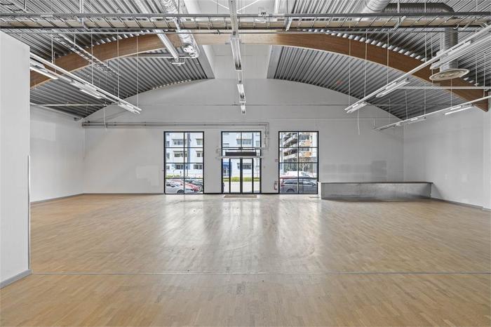 Öppen och rymlig yta med generös takhöjd. Lokalen är utrustad med fantastiska fönsterpartier i entrén samt längs med lokalens långsida.
