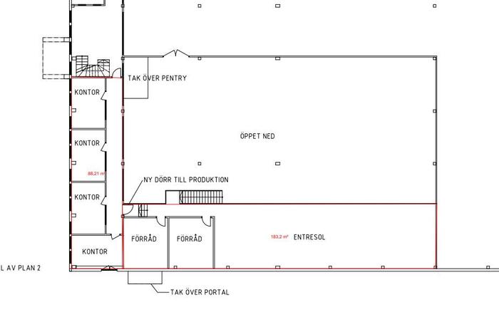 Plan 2 uppmätt.pdfIndustri/Kontor/Lager, 410 m2, Värnamo