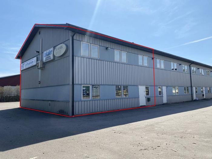 Mycket ljus och fin Industri -kontorslokal om ca: 264 kvm fördelat på två plan. Bottenvåning består av verkstad, lager med en port 2 m hög + 2.40 bred, wc, dusch samt omklädningsrum. En besöksentré. Lokalen har nymålade väggar samt nymålat golv.