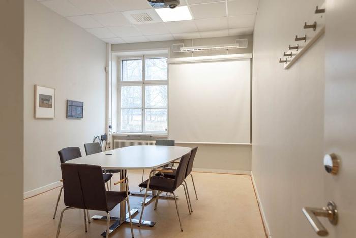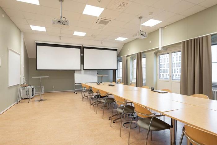 På det översta våningsplanet återfinns flera större och mindre mötesrum samt kontorsrum och mindre samtalsrum.