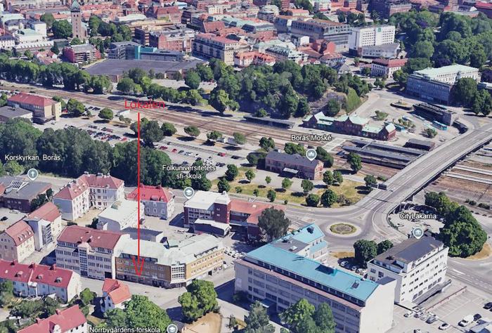 Lokalen har ett utmärkt läge med en busshållplats precis utanför fastigheten och endast några minuters gångavstånd till Borås Centralstation. Närheten till Riksväg 40 gör det enkelt att nå med bil, och parkering finns tillgänglig på baksidan av fastigheten, vilket underlättar för både personal och kunder.