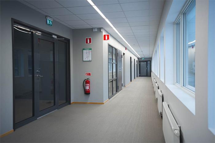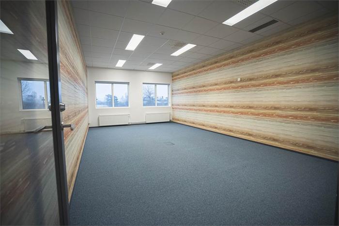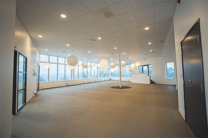 4 separata rum som antingen kan vara kontor, konferens eller mötesrum, tillsammans med en större öppen yta - antingen för arbetsplatser eller lunch-/pausrum.