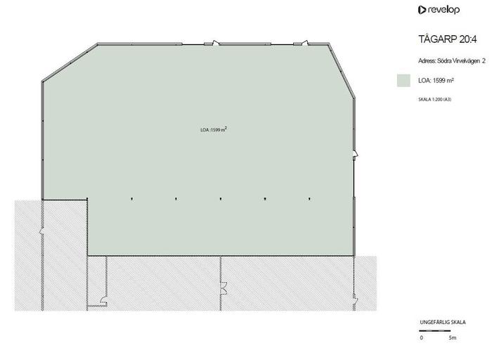 Lagerlokalen om 1600 kvm erbjuder öppen planlösning, tre markportar och generösa takhöjder. I direkt anslutning till lokalen finns markyta om 5000 kvm som kan inhängnas. Ytterligare finns möjlighet att hyra tillhörande kontor i varierad storlek.