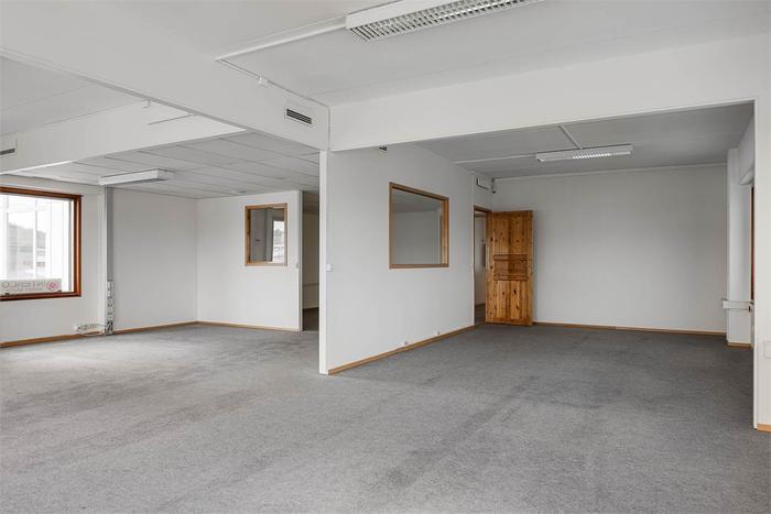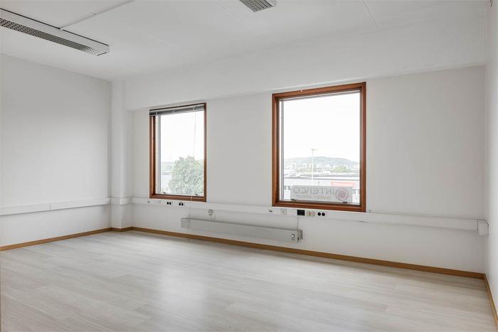 Lokalen finns på plan 2 och ytan är idag fördelad på ett öppet kontroslandskap samt ett antal mindre kontorsrum.
