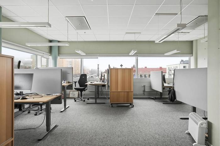 Planlösning:Kontoret har en planlösning med mestadels öppet kontorslandskap. Finns även extern zon med mötesrum.