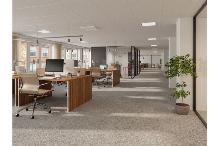 Förutom kontoren finns två stora öppna ytor som kan användas för olika ändamål skapa ett inspirerande öppet landskap, en kreativ projektyta eller en avslappnad loungegrupp för spontana möten och erfarenhetsutbyte.