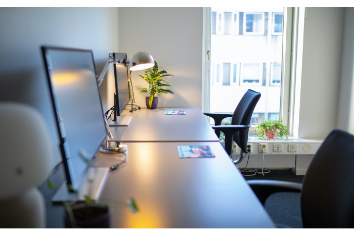 Här samsas startupbolag med andra frilansare, egenföretagare och distansarbetare under ett fast eller flexibelt upplägg. Som hyresgäst sitter du eget kontorsrum eller öppen lounge. Alla skrivbordsplatser har höj- och sänkbara skrivbord, ergonomiska kontorsstolar samt tillgång till låsbart skåp.