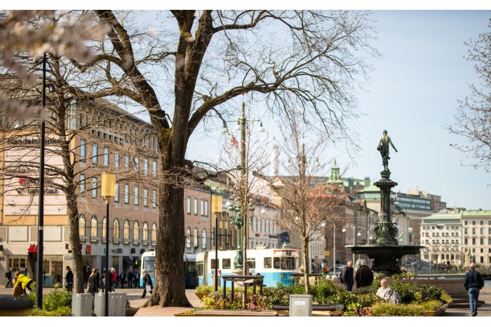 Kontoret har ett utmärkt läge precis runt hörnet från Brunnsparken, i närheten av den södra entrén till Arkadenhuset. Från Brunnsparken och Kungsportsplatsen avgår bussar och spårvagnar som tar dig till alla delar av staden. För dem som pendlar tar det endast cirka fem minuter att promenera till Centralstationen, där du har tillgång till tåg- och bussförbindelser. Lite längre bort, vid Stenpiren, är det möjligt att ta färjan till skärgården eller Hisingen