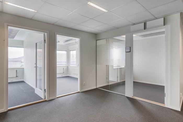 Kontoret inrymmer idag ett flertal kontors- och mötesrum i varierande storlek, öppna kontorslandskap och ett trevlig pentry med gemensamhetsyta i lokalens mitt samt två stora takterrasser.