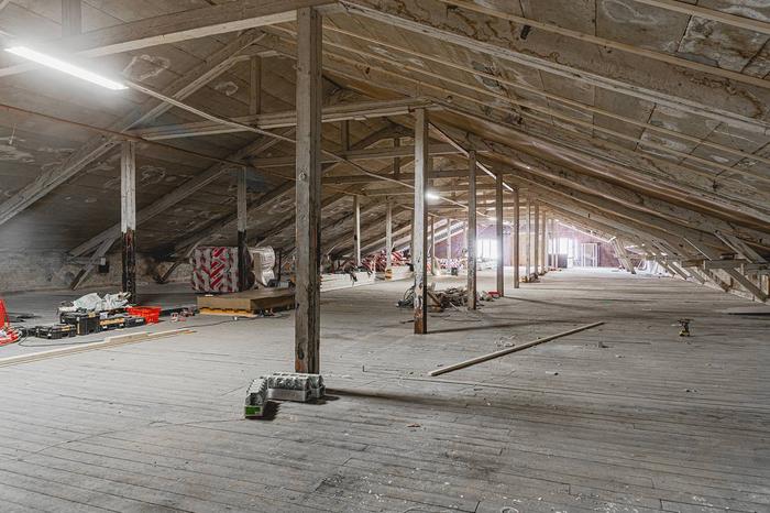 Gammaldags fabriksskänsla parat med den senaste designen skapar utrymmen för dig som letar efter det där extra. Stora fönster mot gaveln och takkupor med ljusinläpp. Hiss upp till planet.