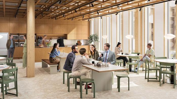När du behöver pusta ut lite tar du dig bara upp till kontorens gemensamma takpromenad. Där kan du filosofera med en kopp kaffe, röra på dig i utegymmet eller ta en lunch i det gröna, med den växande staden som fond.