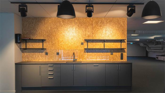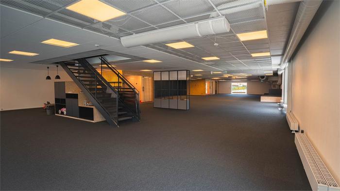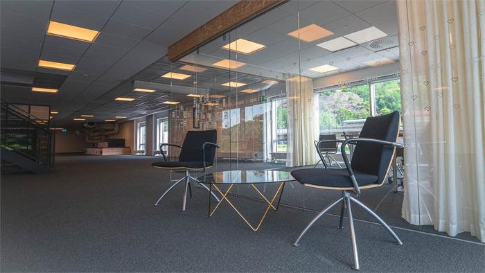 Lokalen ligger i en modern byggnad och erbjuder en kreativ öppen planlösning tillsammans med två mötesrum och ett separat kontor, vilket ger flexibilitet för olika arbetsstilar och behov.