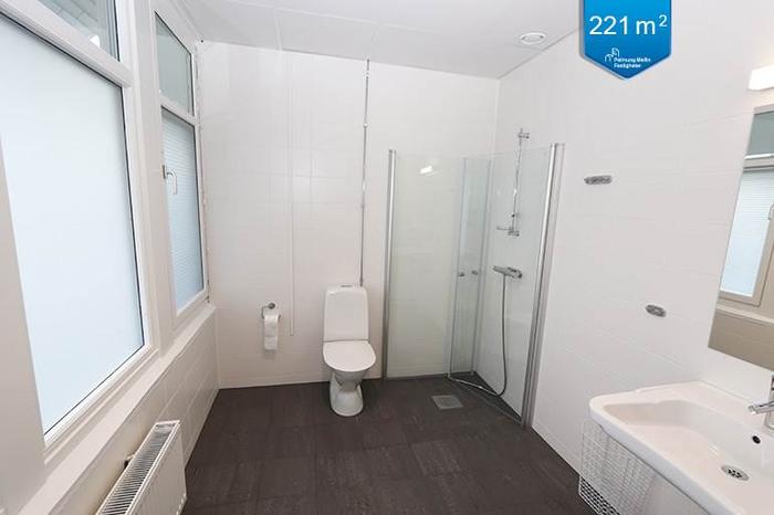 RWC med dusch och WC är nyrenoverade och har givetvis försetts med smakfullt kakel och klinker.