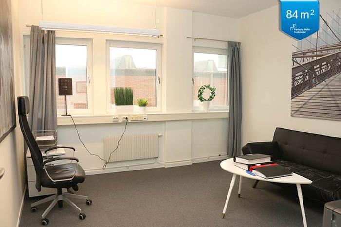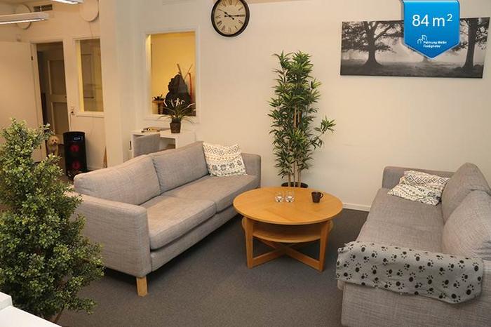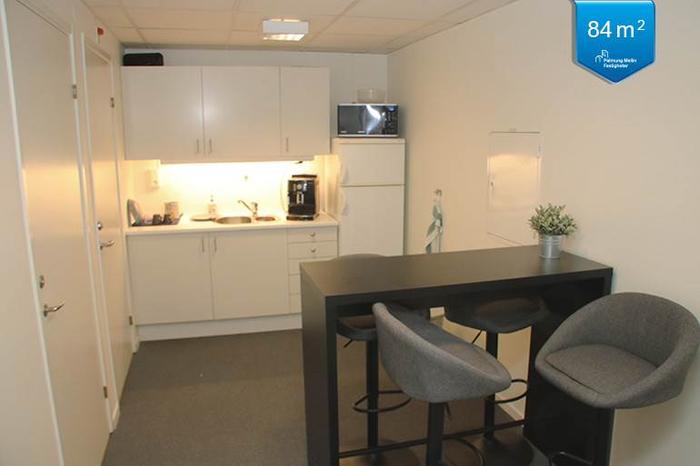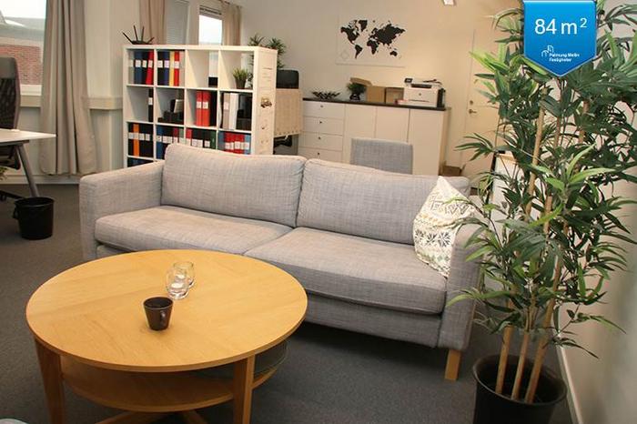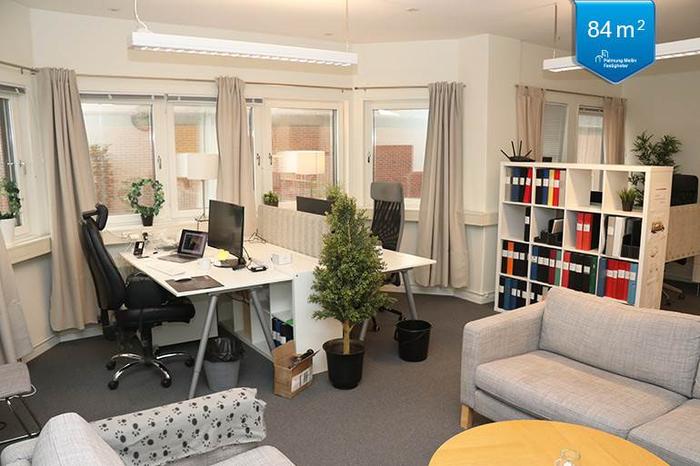 Komplett och väldisponerad kontorslokal på 84 kvm en trappa upp i byggnaden som även har hiss. Lokalen har egen ingång, två WC, separat dusch, förråd samt pentry och två väl tilltagna kontorsrum som ger flexibilitet när det gäller antalet arbetsplatser.