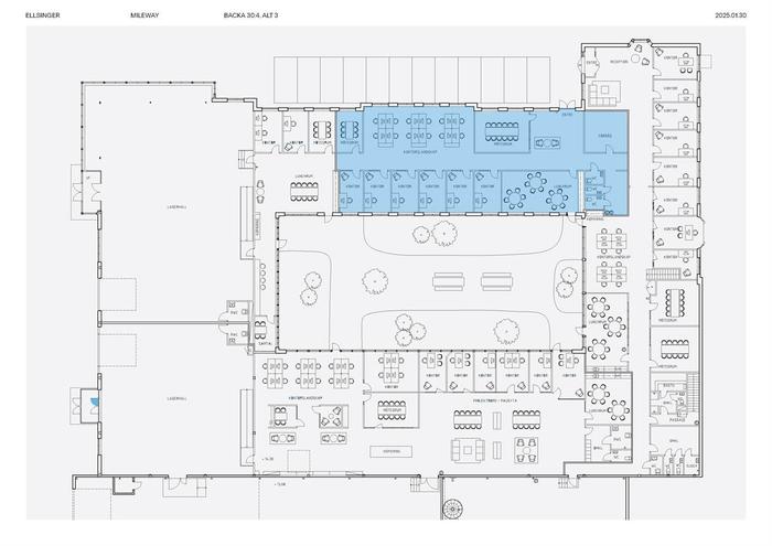 Blandad planlösning medöppna ytor och separata kontorsrum
