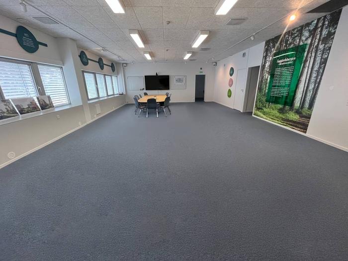 Planlösningen ger flexibilitet för olika typer av verksamheter som behöver både arbetsytor och förvaring.