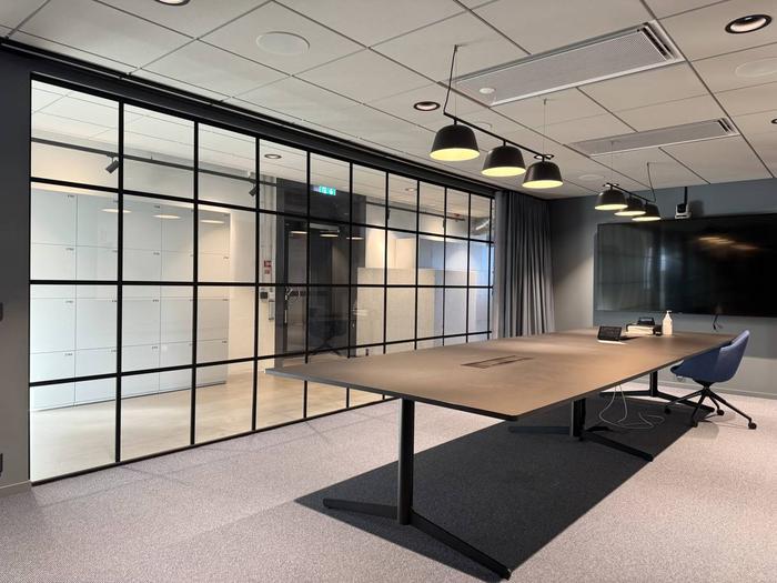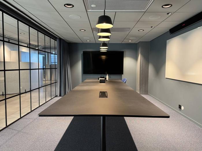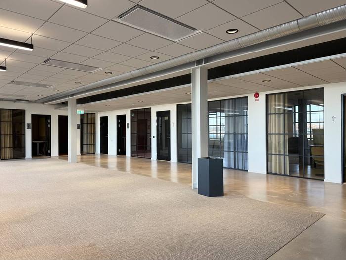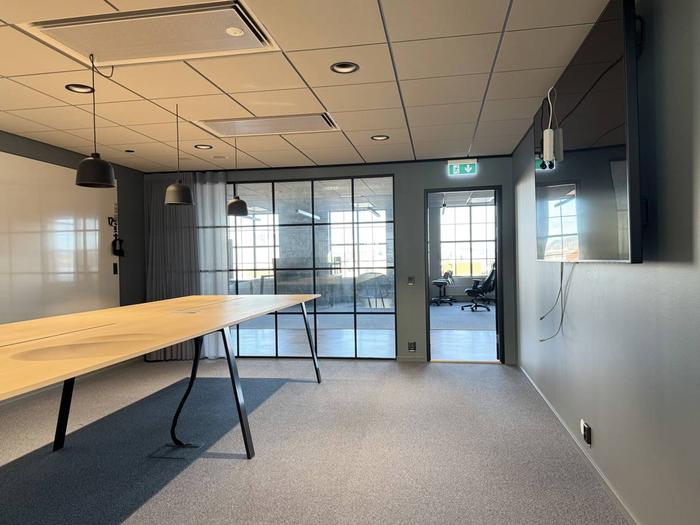 Entrén leder in till en generös öppen kontorsyta med god plats för flera arbetsstationer, vilket skapar en luftig och modern arbetsmiljö. I anslutning finns flera mötesrum i varierande storlek, lämpade för såväl interna möten som kundträffar. Ett större konferensrum ger möjlighet till styrelsemöten eller workshops.