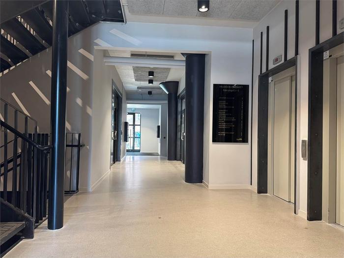 Med sina robusta betonggolv och putsade väggar skapar lokalen en trendig, industriell atmosfär. Den öppna planlösningen ger ett luftigt arbetslandskap, och rummen erbjuder ytterligare gott om utrymme för fler arbetsplatser eller kreativa möten och viktiga presentationer. Här finns också ett modernt kök/pentry - en perfekt samlingspunkt för kollegorna. För extra bekvämlighet har lokalen 2 WC varav en med dusch, vilket gör den välanpassad för en hektisk arbetsdag.