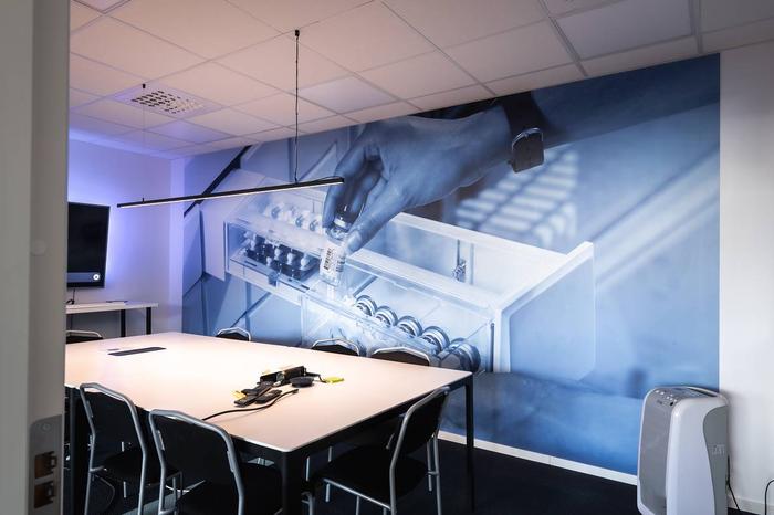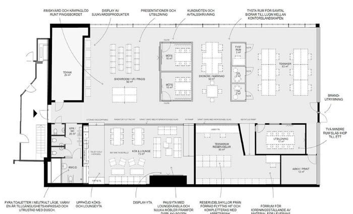 Planlösning:Öppen planlösning, 3 kontor/mötesrum, 3 mindre tysta rum för vila/telefonsamtal. Teknik- och förråd. Fullutrustat kök, lounge yta.