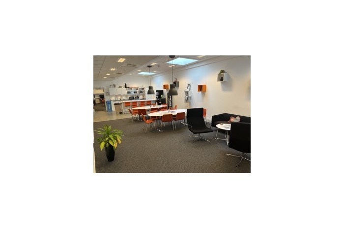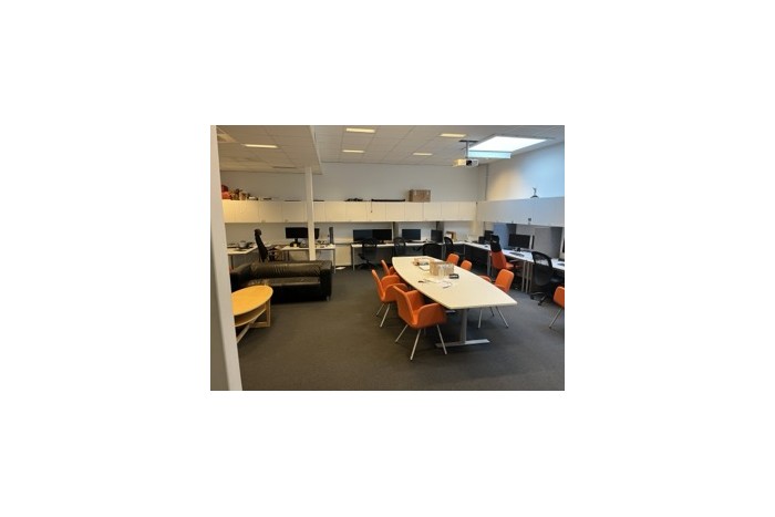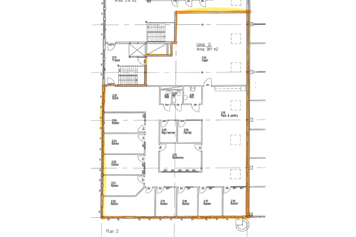 Kombilokal med lager, kontor och mindre kundmottagning/butik. Lokalen ligger på två våningsplan med lager, butik, omklädningsrum och några kontor på entréplan. På våning 1 finns fler kontor, konferensrum, lunch och pausrum samt en större öppen yta som kan fungera som mindre lager eller projektyta.