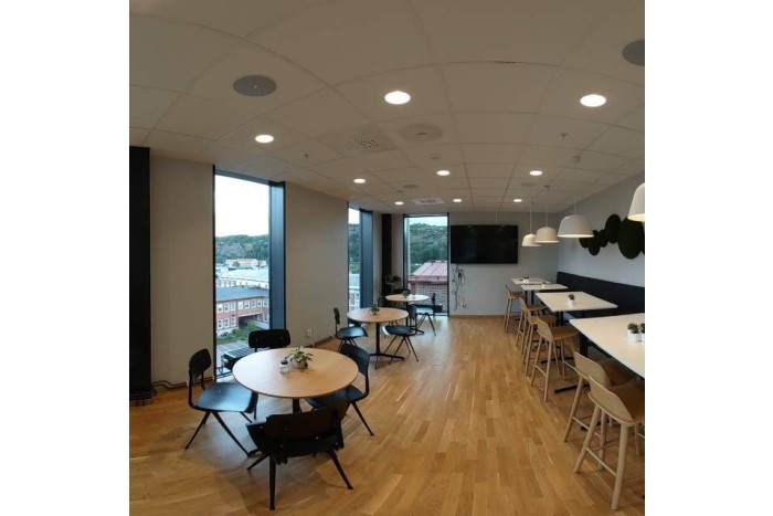 Lokalen ligger på de två översta våningarna i vår nyaste byggnad på Krokslätts Fabriker.