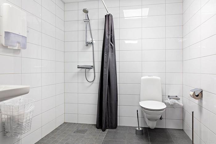Gott om lunchalternativ och nära till kollektivtrafik i ett lugnt område.