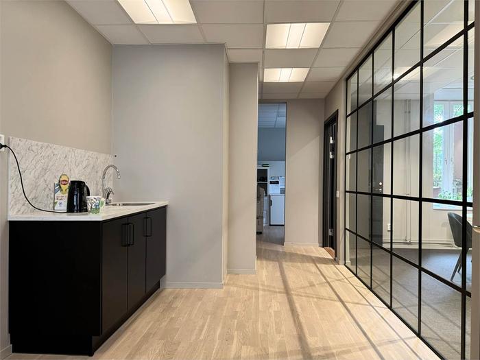 Lokalen är nyrenoverad och genomtänkt utformad för att skapa en arbetsmiljö som främjar samarbete, trivsel och effektivitet. Kombinationen av öppna ytor, avskilda rum och sociala ytor gör detta till en arbetsplats där både teamkänsla och fokus kan växa.