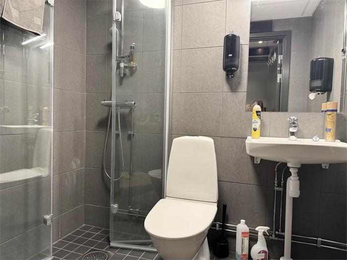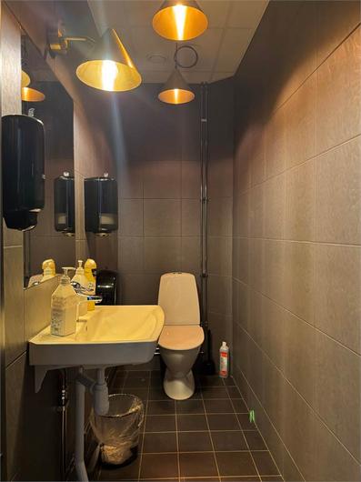 Via en interntrappa når ni entréplanet (43 kvm), som även har en egen ingång. Här möts ni av ett stilrent kök med modern utrustning, generös matplats för personalen samt en WC. I direkt anslutning finns ett förråd om 15 kvm, perfekt för förvaring av material eller utrustning.