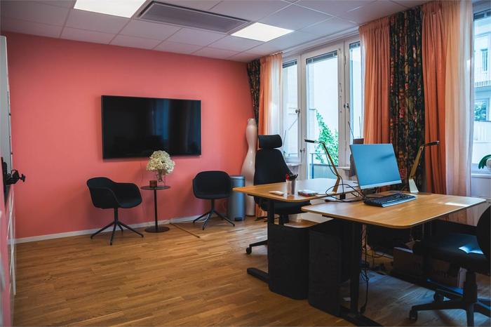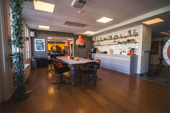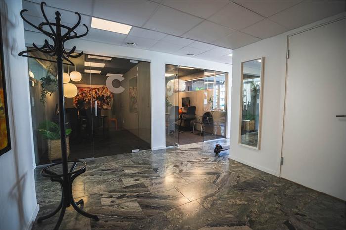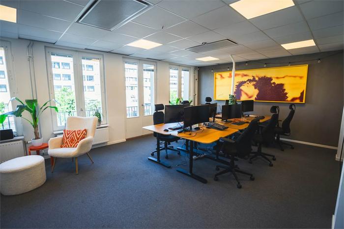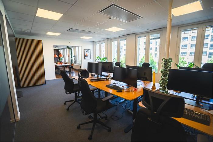 Planlösningen omfattar flera kontorsrum, öppna ytor, två kök samt flera franska balkonger som ger ett fint ljusinsläpp och skapar en trivsam arbetsmiljö. Lokalen har allt som förväntas i en modern kontorslösning och fungerar bra för både samarbete och enskilt arbete.