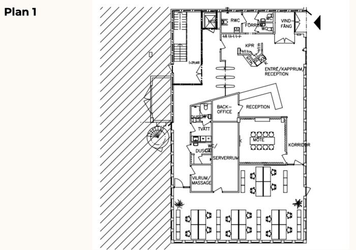 Vid uthyrning av mindre delar av lokalen erbjuds rum i olika storlekar med tillgång till gemensamma ytor såsom kök, toaletter och terrass. Sidotjänster som städning, kaffe, el och internet ingår självklart i priset vid delad uthyrning, vilket gör det enkelt för ert företag att komma på plats.