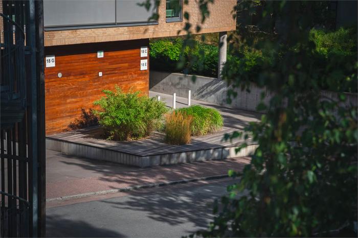 Bottenvåningen har en generös terrass, medan de övre våningsplanen har balkonger med fri utsikt över staden. Området erbjuder parkering, smidiga kollektivtrafikförbindelser och i huset intill etableras ett gym, samtidigt som lunchmöjligheter finns på plats!