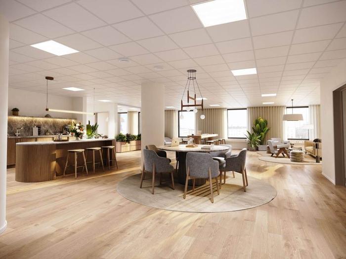 Lokalerna erbjuder generösa ytor med många välplanerade mötesrum i olika storlekar, flexibla arbetsplatser, smarta backofficeytor och inbjudande loungeytor och med en ljusgård i hjärtat av byggnaden på plan 3 som fyller kontoret med dagsljus och skapar naturliga samlingsplatser för både möten och sociala pauser dvs ett kontor där varje kvadratmeter är noggrant genomtänkt för att skapa en modern, trivsam och funktionell arbetsmiljö.