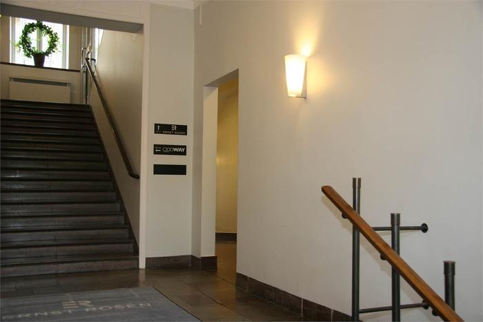 Planlösning:Flexibel kontorslokal med sex rum för individuellt arbete, plus en större yta för reception, besök eller öppet landskap. Konferensrum, kök, WC och dusch tillhandahålls för bekvämlighet.