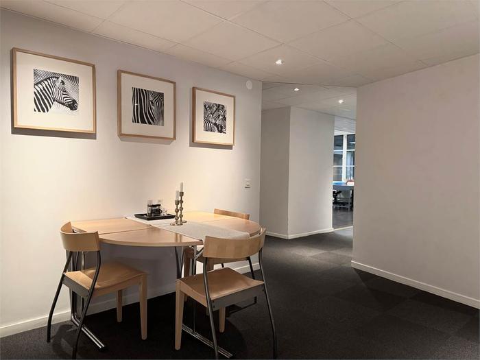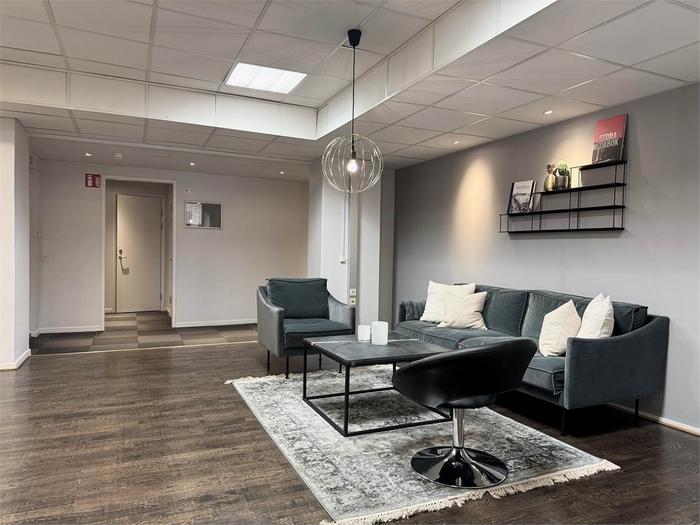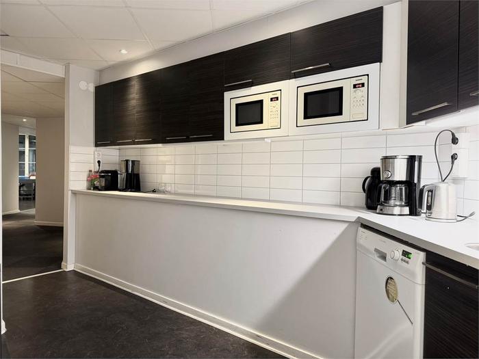 I våra fräscha gemensamma utrymmen hittar du ett två fullt utrustade kök, en rymlig lounge för avkoppling eller nätverkande, samt toaletter, varav en med dusch för dig som vill fräscha upp dig efter jobbet eller träningen. Vi har även två konferensrum som delas med de andra hyresgästerna, perfekt för både interna och externa samarbeten.