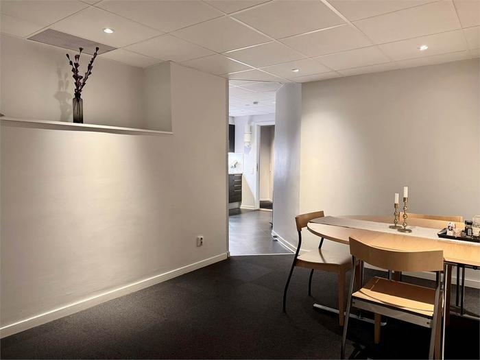 Kontorshotell med 12 kvm och 22 kvm rum. Övriga utrymmen som kök, lounge, WC och mötesrum delas med andra hyresgäster.