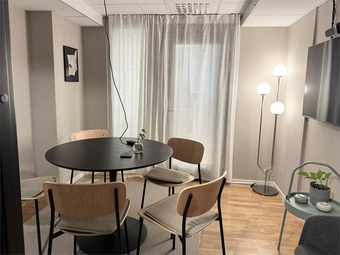 163 kvm - Lokalen erbjuder en trevlig planlösning med både kontor och mötesrum. Här finns även ett förråd/vilorum, 2 WC och ett pentry med matplats i den öppna delen av lokalen.