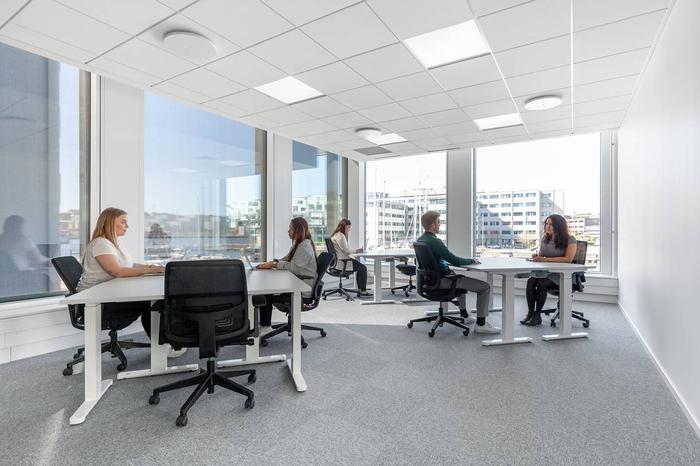 Planlösning:Öppen ljus planlösning, kontor med mycket ljusinsläpp.