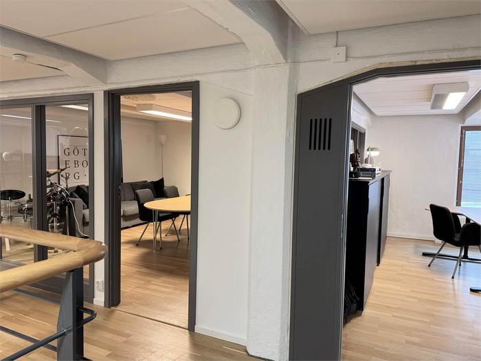 I detta utrymme finns också 3 större kontor vilket främjar samarbete och teamarbete. Dessutom finns ett större och ett mindre konferensrum som är lättillgängligt för alla anställda och besökare, vilket gör det till en central punkt för möten och presentationer.