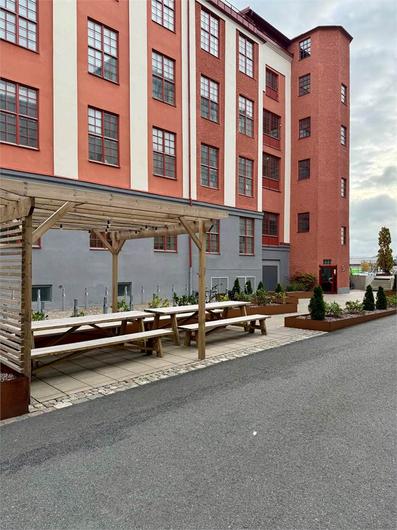 Pagodenområdetär en inspirerande företagsmiljö som kombinerar det bästa av industriell charm och moderna lösningar. I de historiska lokalerna, där Vin & Sprit och Swedish Match en gång huserade, har området utvecklats till över 40 000 kvm fräcka kontorslokaler med en rå, industriell stil som sticker ut. Här möts betong och puts på ett sätt som skapar en kreativ och inspirerande atmosfär - perfekt för företag som vill ha en unik och karakteristisk arbetsplats.