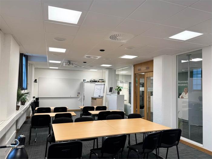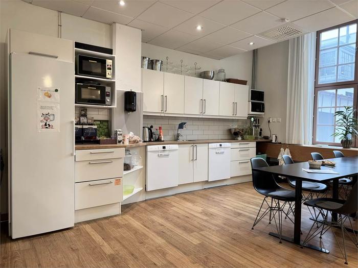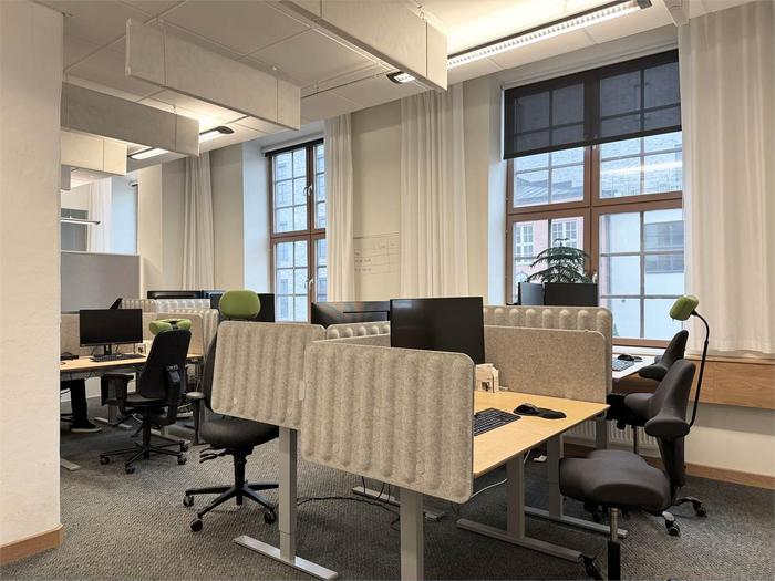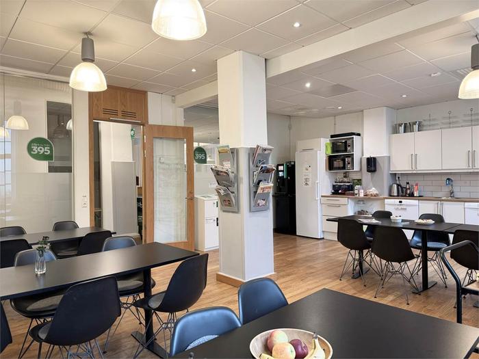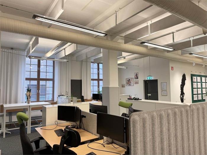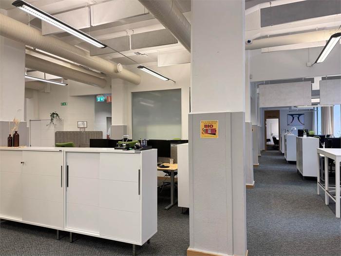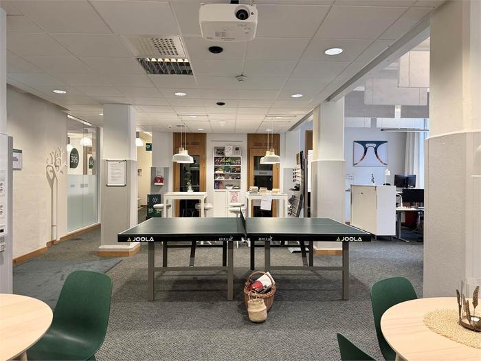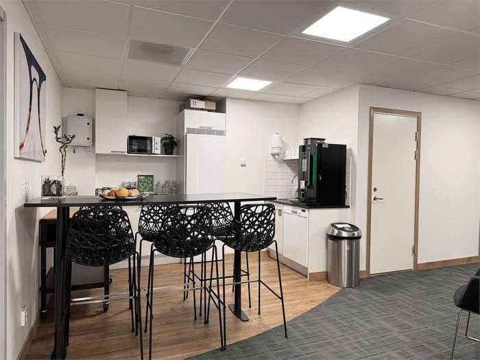 Den centrala arbetsytan är öppen och luftig med generös takhöjd och stora fönster som skapar ett härligt ljusflöde. Lokalen rymmer fyra storrum, flera mötesrum i olika storlekar, HWC och WC, teamsrum, vilorum samt ett stort pentry med matplatser. Centralt finns även en öppen lounge/pausyta som bjuder in till samverkan och kreativa möten. Lokalen har dessutom lasthiss, vilket underlättar logistik och transporter.