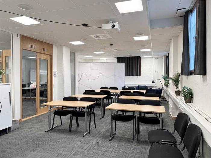 Planlösning:Trevligt kontor med öppet landskap, storrum, mötesrum, teamsrum och separata kontor. Lokalen är på 750 kvm men går att utöka med ytterligare 190 kvm om så önskas. Se planritningen.